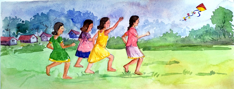 అంతలోనే గాలి వేగంగా వీచసాగింది. సుడిగాలి ఒకటి నేరుగా వీళ్ళున్న తావుకే వచ్చింది. వసంత చేతిలో ఉన్న గాలిపటం ఎగిరి పోతోంది.. "నా గాలిపటం! నా గాలిపటం!" అని అరుస్తూ దాని వెంట పడింది వసంత. ఏం జరుగుతోందో చూసిన సరళ, ఇంకా మిగిలిన పిల్లలు అందరూ వసంత వెంటపడ్డారు. అంతలో వసంత కాలికి ఒక రాయి తట్టుకున్నది. పైనున్న గాలిపటం వైపుకు చూస్తూ నడిచి, ఎదురుగా ఏమున్నదో చూసుకోలేదు ఆ పాప! పడటం పడటమే నేరుగా లోతైన బావిలో పడిపోయింది! వసంతకు యిత వచ్చు; అయినా పైకి వచ్చేందుకు ఆ బావికి మెట్లు లేవు!