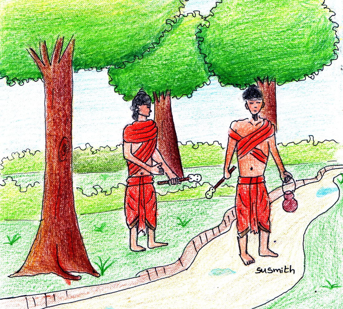 రెండవ వాడు నవ్వాడు. తన చెప్పుల్ని తీసి ముందు పెట్టుకున్నాడు. ఏవేవో మంత్రాలు చదివాడు. తర్వాత ఆ చెప్పులు వేసుకొని,నీళ్ళమీదనుండి మామూలుగా నడుచు-కుంటూ పోయాడు!