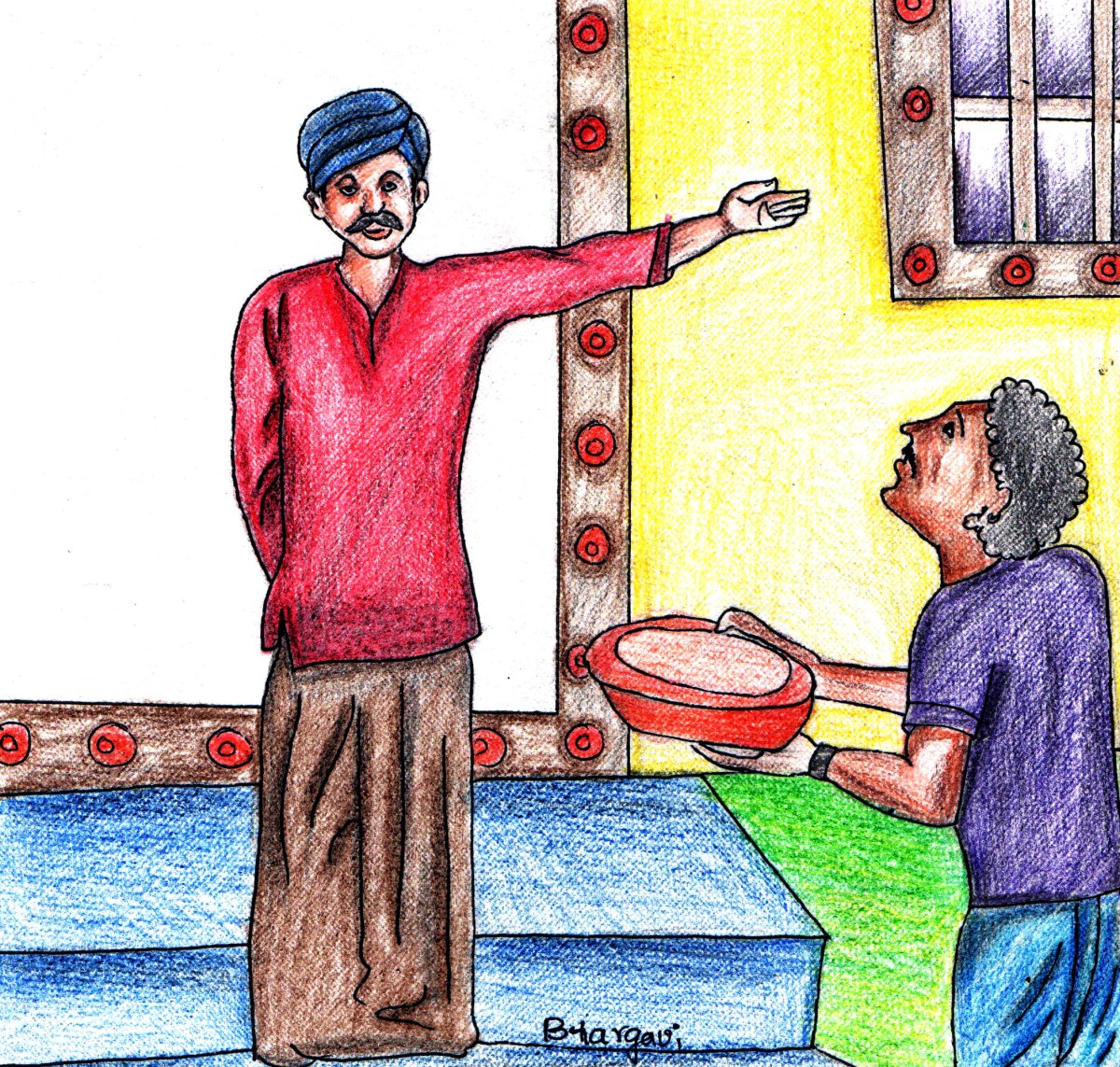 ఇంటికి ఎవరైనా అతిథులు వస్తే వాళ్ళు అడగకుండానే గ్లాసులకు గ్లాసులు నీళ్ళు ఇచ్చి, వాళ్లను వీలైనంత త్వరగా తిప్పి పంపించేవాడు: "వామ్మో! అతను బిచ్చగాడి నుండే బిచ్చం ఎత్తుకుంటాడు" అని బంధువులు ఎవ్వరూ అతని ఇంటికి వచ్చేవాళ్ళు కాదు.
