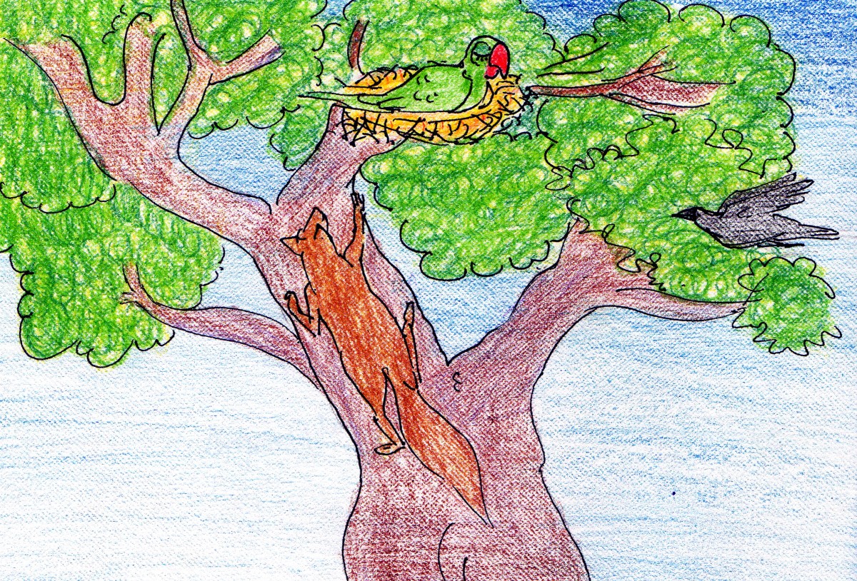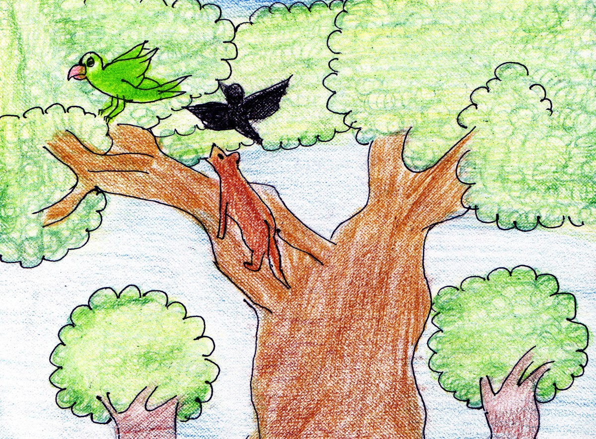 ఆ రోజు రాత్రి చిలుక పడుకోగానే నక్క వచ్చి, గుట్టు చప్పుడు కాకుండా చెట్టెక్కబోయింది. అయితే అక్కడే ఉన్న కాకి దాన్ని చూసింది. ఇంకేముంది? ఒక్క సారిగా నక్క మీదికి దూకింది- ఎక్కడ పడితే అక్కడ పొడవటం మొదలు పెట్టింది.