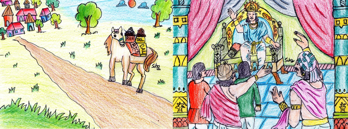 "మన రాజ్య ఖజానా అంతా ఖాళీ అయ్యింది. ప్రస్తుతానికి పొరుగు రాజ్యం నుండి ఆహార పదార్థాలు తెప్పించాను.