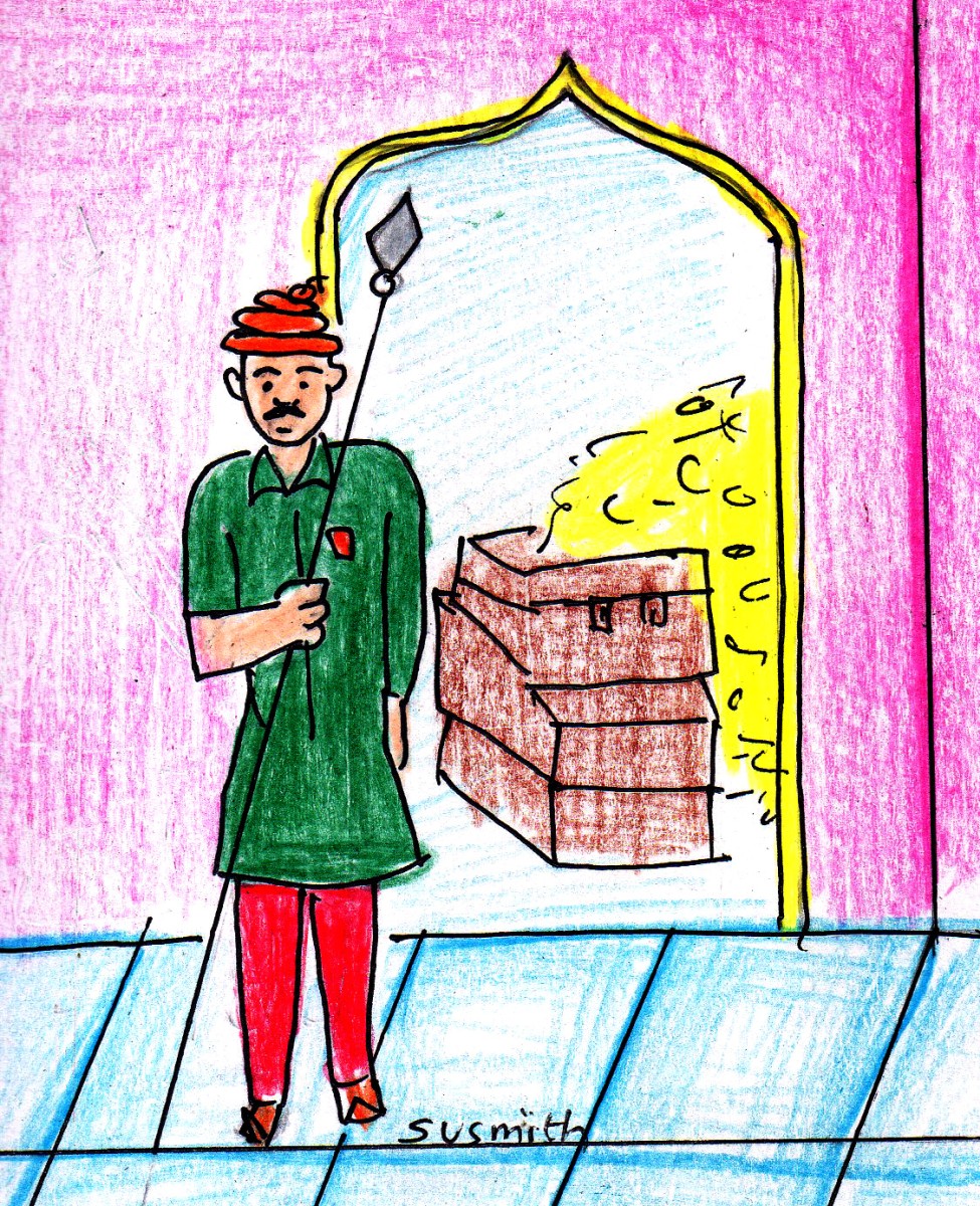 "అవసరం లేదు. ఎవరక్కడ- మా మందిరంలో మూలగా ఒక మూట ఉంటుంది- దాన్ని తీసుకురండి!" భటుల్ని ఆదేశించారు రాజుగారు.
