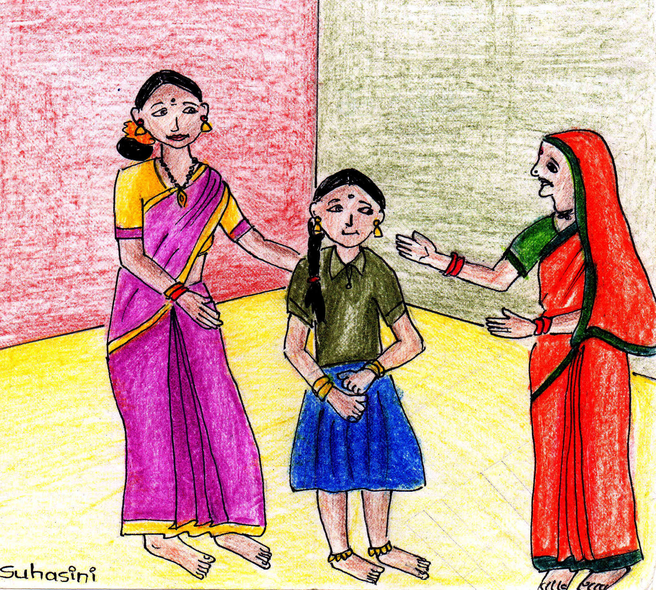 "ఏం చెయ్యనమ్మా, అక్కడ నా కూతురు ఇంటి బరువు మొయ్యలేక కష్టపడుతోంది; అల్లుడా, ఇల్లు పట్టించుకోడు; నాకు ఆరోగ్యం బాగోలేక నీరసం అయిపోయానని, 'నీకు తోడుగా ఉంటుంది- దీనికి కూడా పని నేర్పు' అని పంపింది ఈ చిన్నదాన్ని. ఏమాటకు ఆమాటే చెప్పుకోవాలమ్మా, దీని చురుకుదనమూ, తెలివితేటలూ- మీలాంటి పెద్దవారి ఇళ్లల్లో ఉండాల్సిన పిల్ల!’ అంటూ కళ్లు తుడుచుకుంది కమలమ్మ.