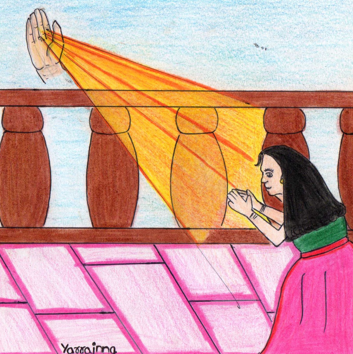 తనకి ఓ శాపం పెట్టాడు. 'తను రోజూ మూడు గంటల కన్నా ఎక్కువ సేపు పండుకోకూడదు. అట్లా పడుకుంటే తను ఒక బఠానీ గింజలాగా మారిపోతుంది. అంతేకాదు- తను ఇంకెప్పుడూ సూర్యడిని కూడా చూడకూడదు. ఎండకు ఉంటే తన రక్తం ఎండిపోయి, తను చనిపోతుంది!