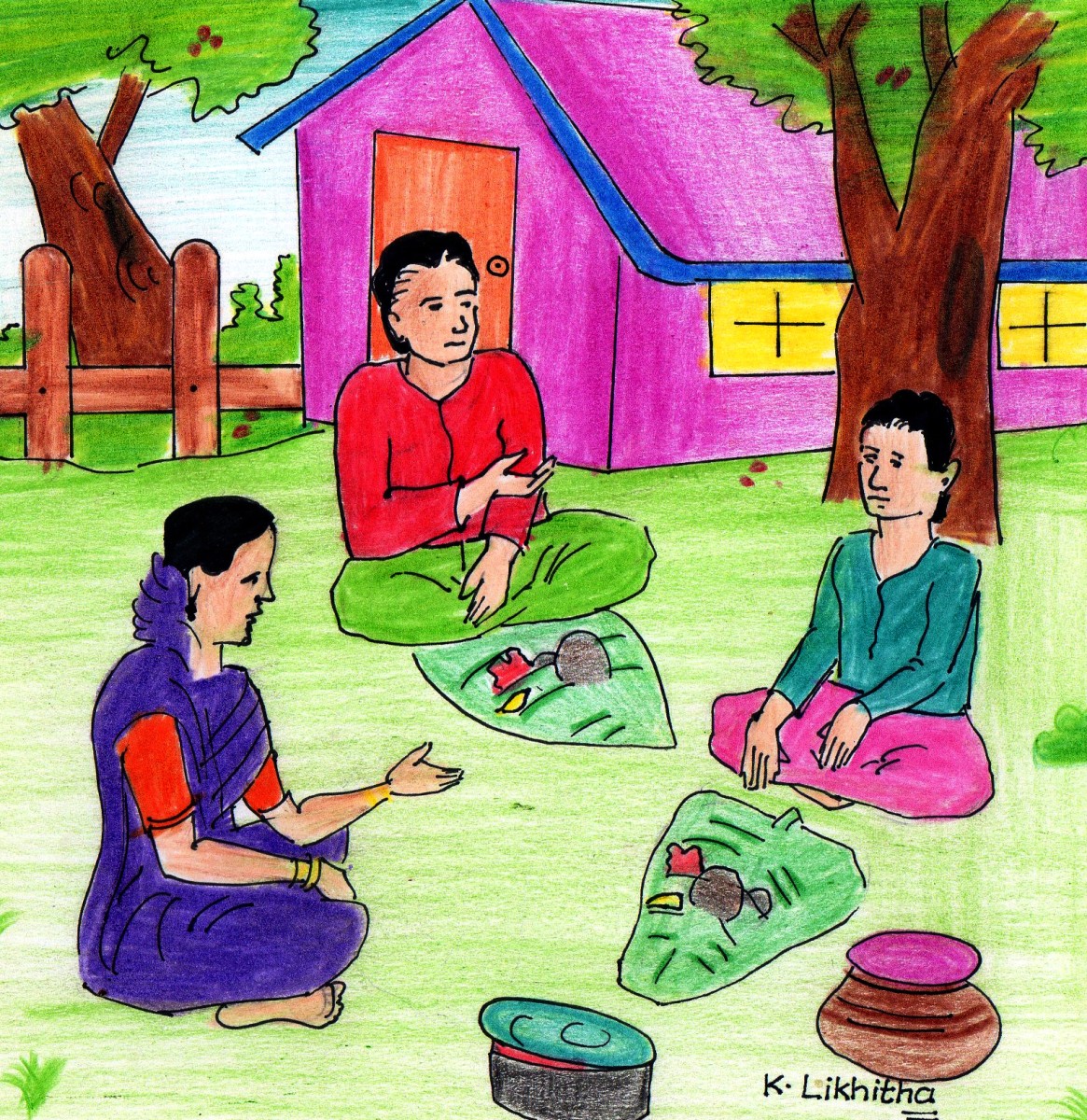 అన్నలిద్దరినీ చూసి ఆ పాప చాలా సంతోషపడింది. "మీరొచ్చేసారుగా, ఇంకేమీ పర్లేదు. ఇదిగో, ముందు ముద్దపప్పు తినండి" అన్నది సంతోషంగా.