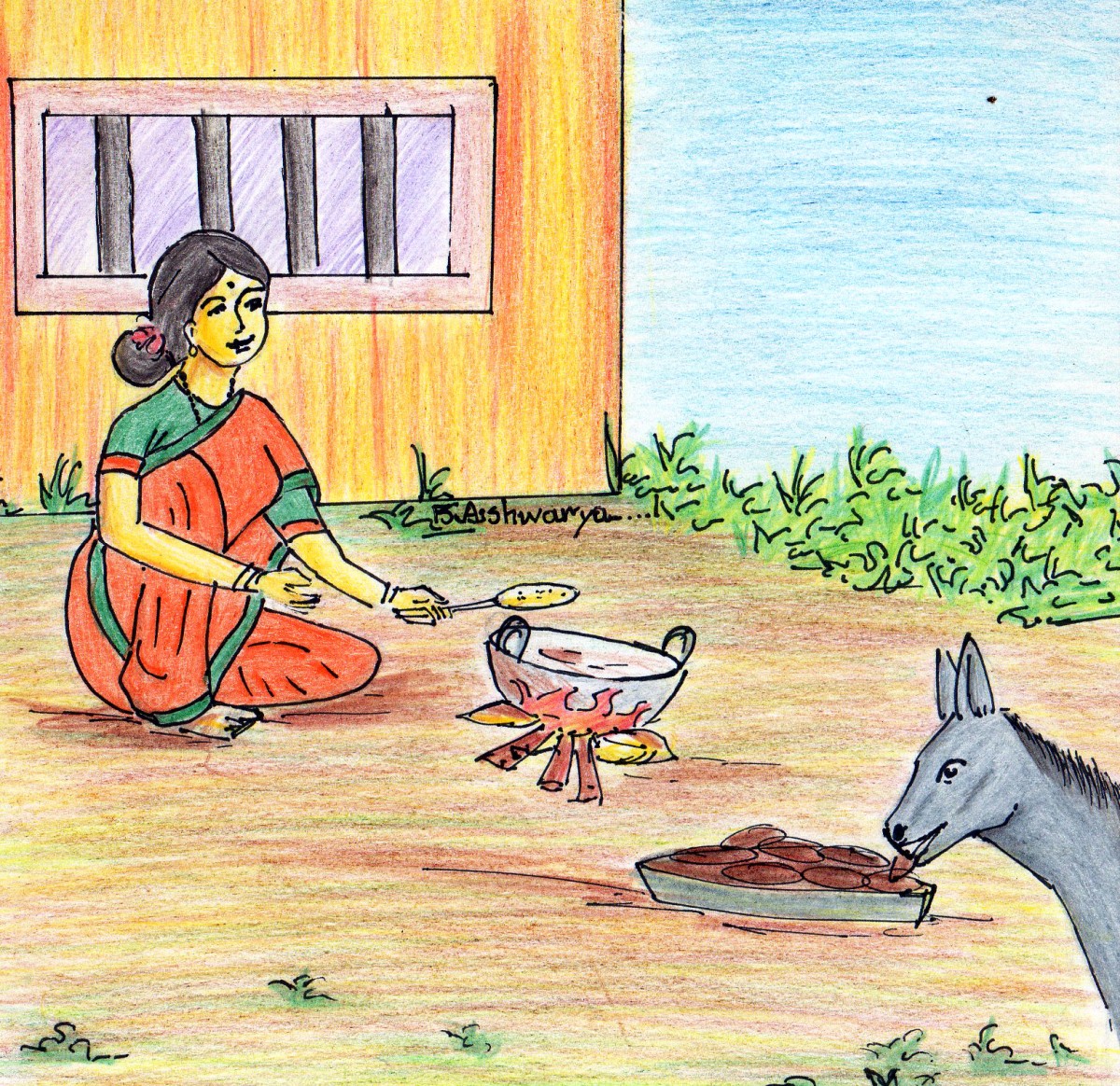 సీతాలు లబోదిబోమన్నది. "గారెలు తినేసి పోతోంది చూడయ్యో!" అంటూ.