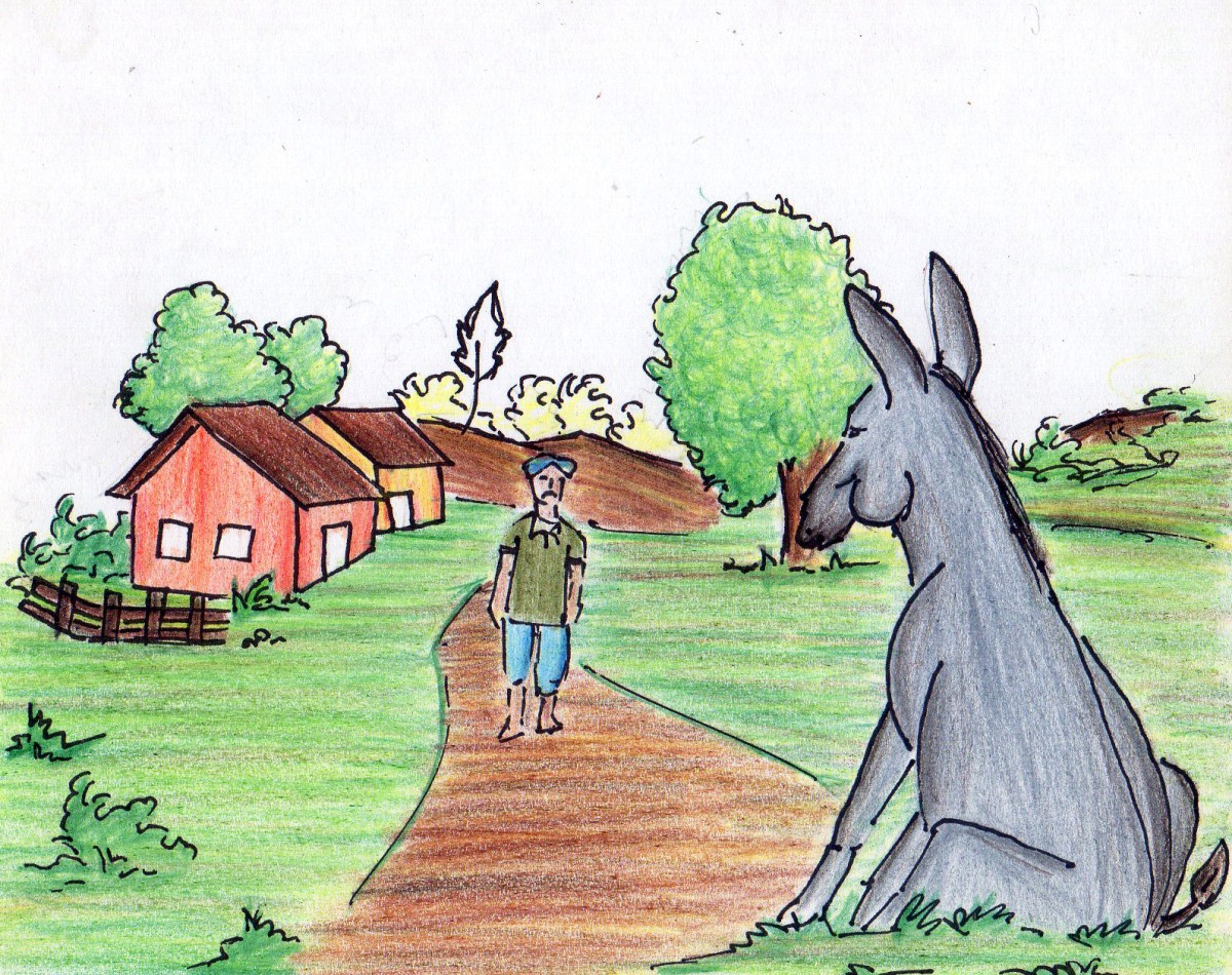 గాడిదకి తల తిరిగింది: "నేను తిన్నది రెండే కదా, అట్లా అంటారేంటి?!" అని. అయినా తనని తాను కాపాడుకోవాలి కాబట్టి, అది చటుక్కున వెను తిరిగి, రోడ్లోకి పరుగు పెట్టింది.