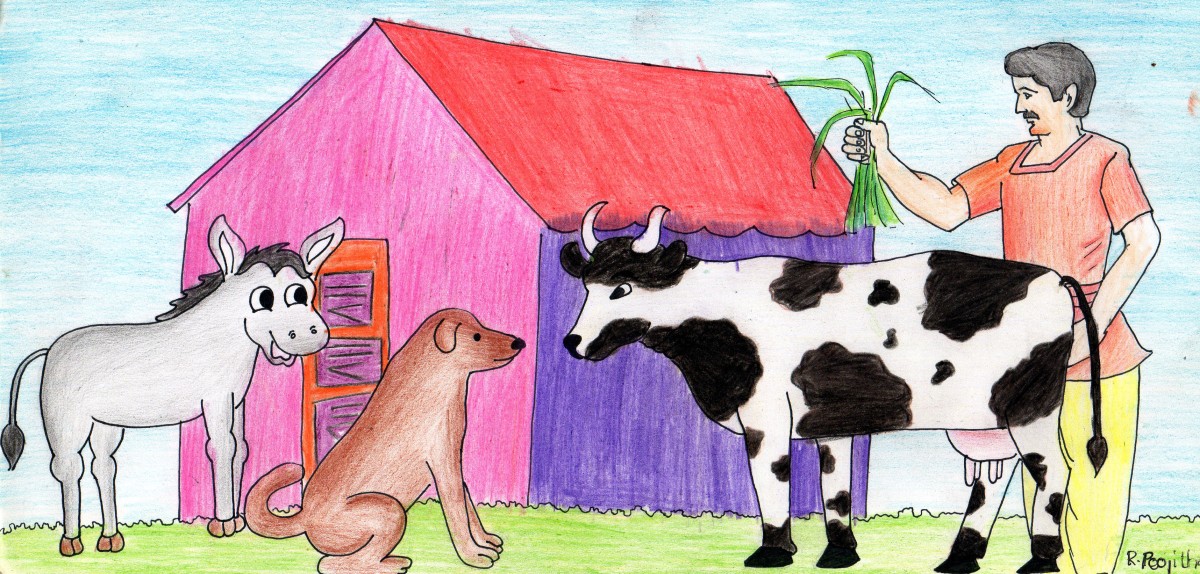 అనగనగా ఓ రైతు దగ్గర ఒక ఆవు, ఒక గుర్రం ఉండేవి. రోజూ అవి రెండూ ఊరవతల ఉన్న అడవికి వెళ్ళి మేసి వచ్చేవి.