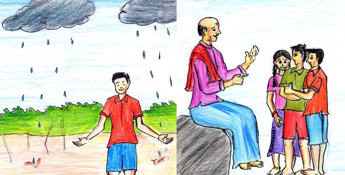 బిట్టు ఒక్కసారి గట్టిగా ఊపిరి పీల్చి వదిలాడు. ‘అబ్బ, ఎంత బావుందో!’ అనుకున్నాడు. వెంటనే వాన మీద ఒక కవిత రాసేసాడు కూడా :