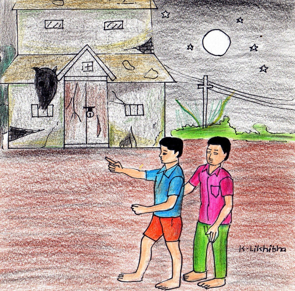పిల్లలిద్దరూ మహల్ ద్వారం వద్దకు వెళ్లారో, లేదో- కోట వెనకవైపు ఆకాశంలో భయంకరంగా ఒక మెరుపు మెరిసింది. ఉరుములు ధబధబా ఉరిమాయి. అకస్మాత్తుగా మహల్ కిటికీలోంచి వాళ్ళ మీదికి వెలుతురు ప్రసరించింది. ఆ వెలుతురులో ఏదో వింత ఆకారపు నీడ ఒకటి.. వాళ్ళవైపుకే చూస్తూన్నట్లు నిలబడి ఉంది..