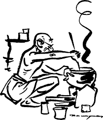 లోపల గాంధీ వంట పనిలో బిజీగా ఉన్నాడు! అందరూ ఎవరికి అప్పగించిన పనులు వాళ్ళు చేసుకుంటూ, కబుర్లు చెప్పుకుంటూ నవ్వుతున్నారు. వాళ్లందరితో కలిసి గాంధీకూడా వంట చేస్తున్నాడు! అది చూసిన నిర్వాహకుడు ఒక క్షణం బిత్తరపోయాడు.