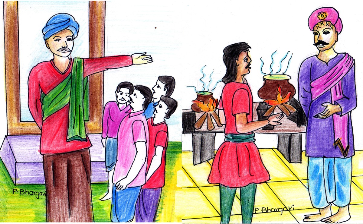 ఎలాగో ఒకలాగా మీకు అయిదారు నెలలకు సరిపడా ధాన్యం ఇస్తాను; రబీ పంటలోంచి మిగతాది చూద్దాం. ముందైతే మీరంతా భోజనం చేసి వెళ్ళండి!" అన్నాడతను.
