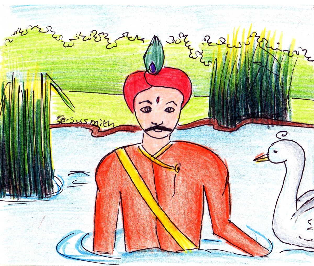 ఆ మహారాజు కూడా పాపం మంచివాడు- ఆ హంసను ఏమీ చేయలేదు. ఊరికే దాని రెక్కలను దువ్వి విడిచి పెట్టేశాడు.