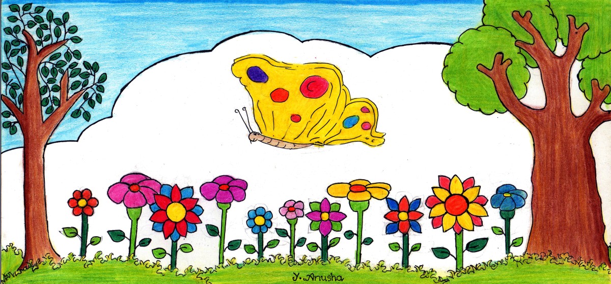 "ఆ రంగులన్నీ మనకి ఉంటే?.. ఎంత బాగుంటుందో!" అనుకున్నది చిట్టి సీతాకోక చిలుక. కానీ ఆ మాటని అది పైకి అనలేదు.