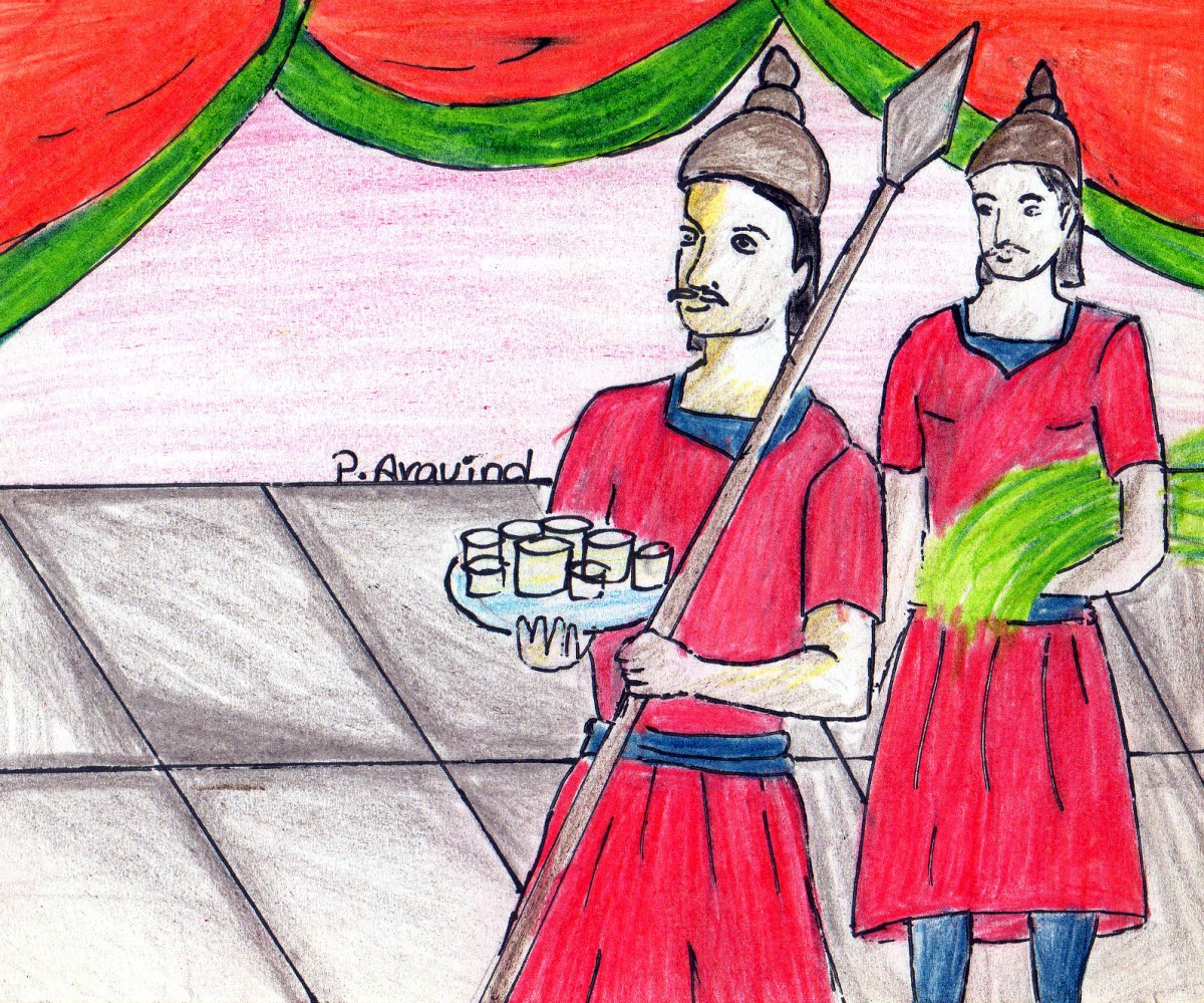 అయితే కోట లోపల కాపలా ఉండే రాజుగారి ఆస్థాన కుక్కలకు అడ్డు ఏమున్నది? అవి యదేచ్ఛగా తిరుగుతూ, రాజుగారి రథానికి తగిలించి ఉన్న జీనులు, కళ్లాలు, రథపు మెత్తలు మొదలైన తోలు వస్తువులను అన్నిటినీ రాత్రంతా నమిలి, ముక్కలు చేసి ఎంచక్కా తిని పోయాయి!