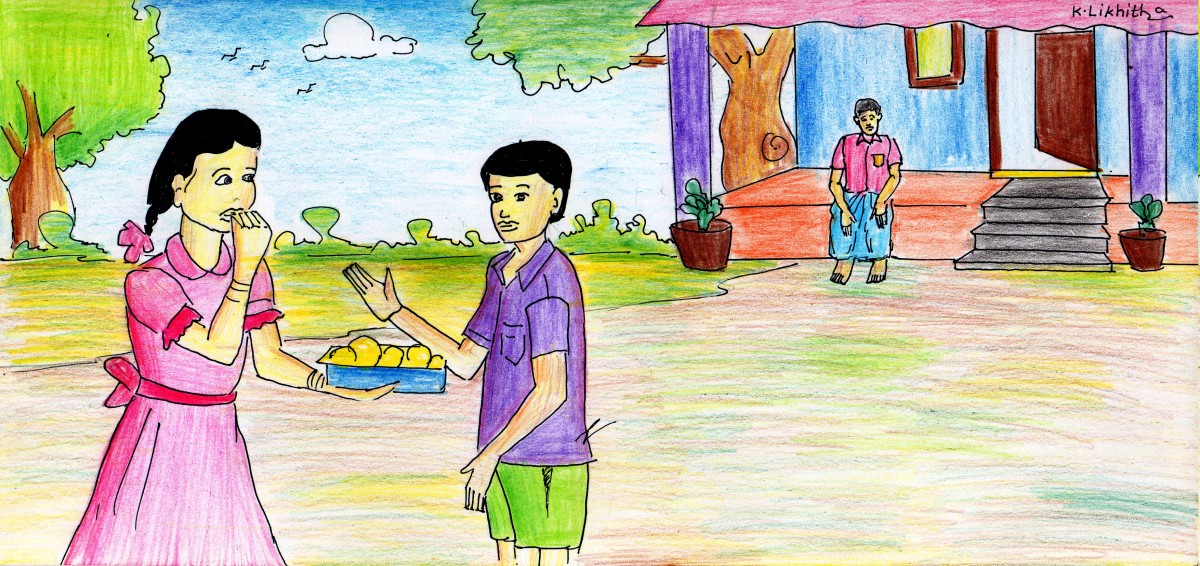 ఒప్పందం ప్రకారం చెల్లెలు గొల్లున నవ్వుతూనే నాలుగు లడ్డూల్ని వాడికి అందించింది-