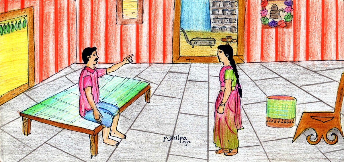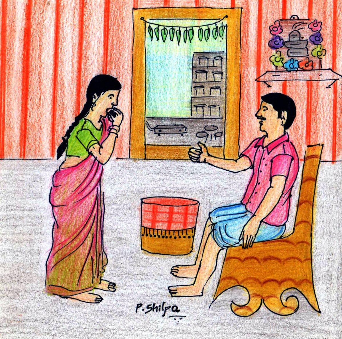 "తొందరగా తీసుకురావే, నోరు ఊరుతున్నది. కడుపులో ఆకలి దంచేస్తున్నది!" అన్నాడు పుల్లయ్య, కంచం ముందు కూర్చుంటూ.