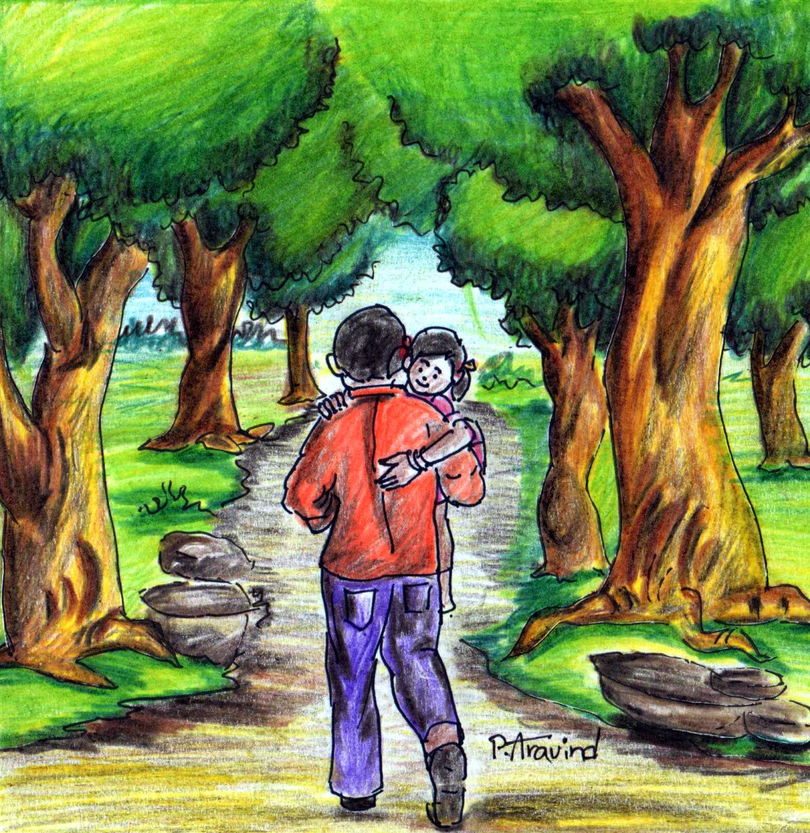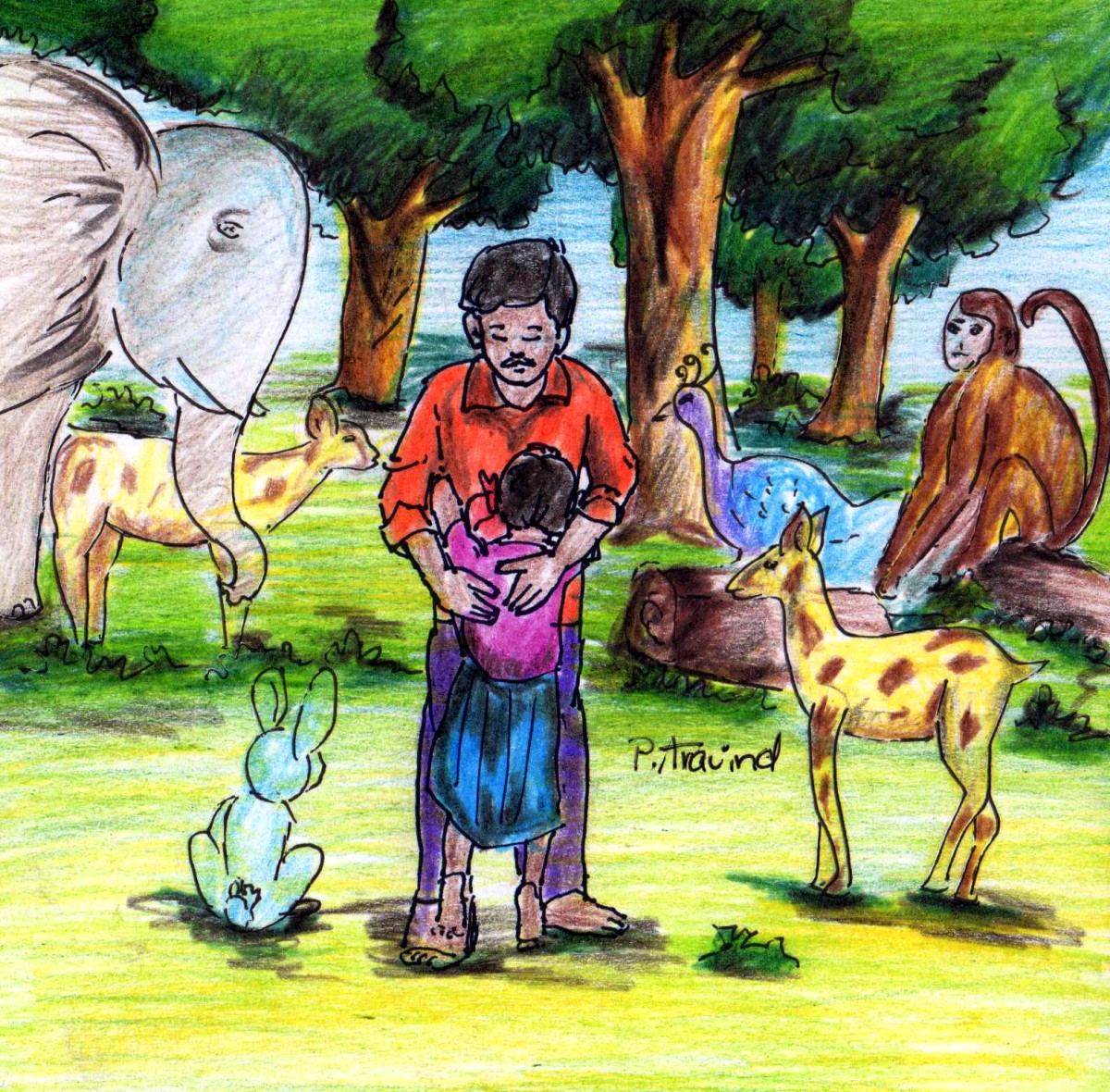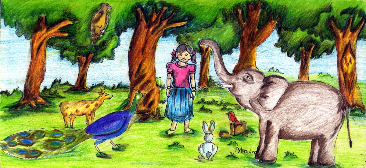 అప్పుడు ఒక భారీ ఏనుగు ముందుకు వచ్చింది- 'నేను పెంచుకుంటాను- నేను ఒంటరిదాన్నేగా, నాకూ తోడు అవసరం' అన్నది. మిగతా జంతువులన్నీ పాపను దీవించి, 'నీకు ఎలాంటి అవసరం ఉన్నా మాకు చెప్పు! వస్తాం" అని ఏనుగుకు చెప్పి వెళ్లి పోయాయి.