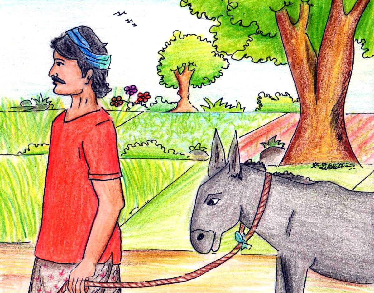 రోజూ ఊళ్ళో వాళ్ల బట్టలను అన్నింటినీ సేకరించుకొని, వంక దగ్గరికి వెళ్ళి, ఆ బట్టలు ఉతుక్కొచ్చేవాడు సాంబయ్య. ఆ బట్టల బరువును మోయటం ఈ గాడిద పని.