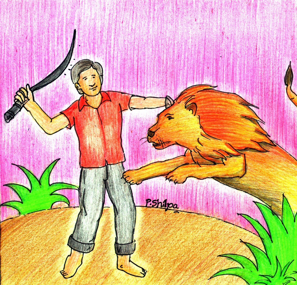 "బలికి పనికొస్తుంది గురూ!" అన్నాడు మరుగుజ్జువాడు, అవతలినుండి, ఆవలిస్తూ. "బాగా చెప్పావురా, బలికి పనికొస్తాడు వీడు. అంతే" అన్నాడు రాక్షసుడు.