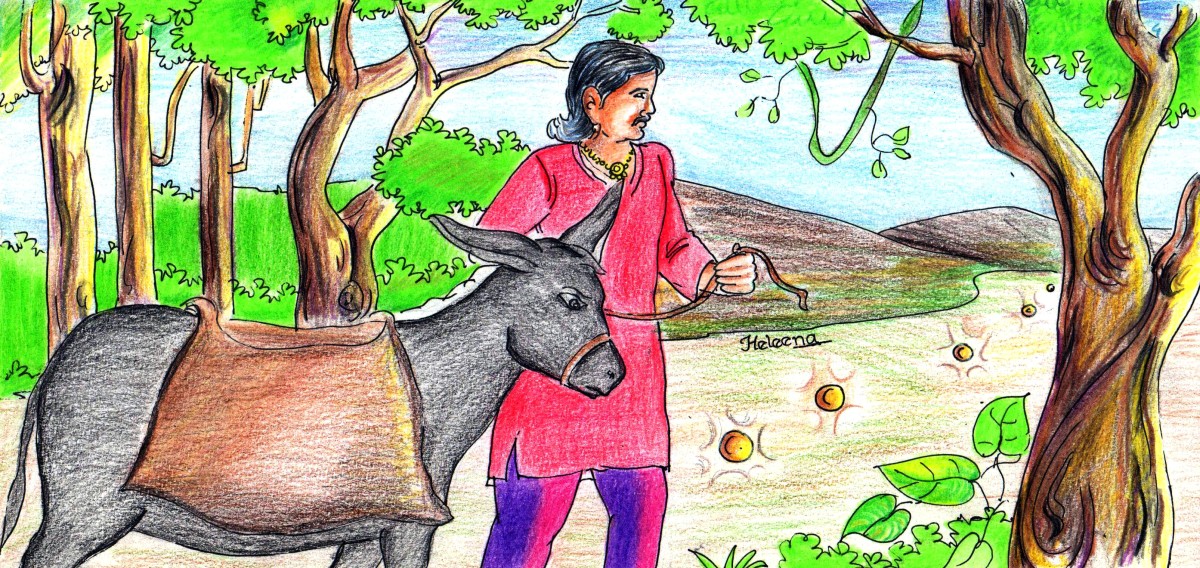 ఇంక చీకటి పడతా వుంది. ఆ అడవిలో దొంగలు చానా ఎక్కువ. వాళ్ల చేతికి చిక్కితే కష్టమే. అందుకని ధనయ్య మెల్లగా వెనక్కి తిరిగి ఇంటికి బైలుదేరినాడు. గాడిద ఆ బరువును మోయలేక, అడుగు తీసి అడుగు వేయసాగింది. ఇలాగే నత్తలాగా నెమ్మదిగా పోయారంటే చీకటి పడి, దొంగలకు దొరికిపోవడం ఖాయం!