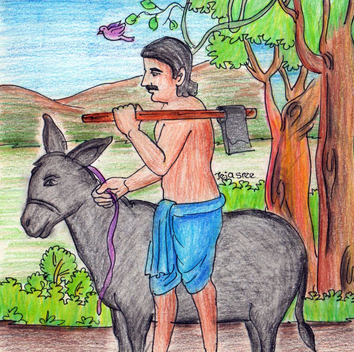 ఒక ఊరిలో రాజయ్య అని ఒక కట్టెలు కొట్టేవాడు వుండేటోడు. వాడు రోజూ అడవికి పోయి ఆ రోజుకు సరిపడా కట్టెలు కొట్టుకోని అమ్మేవాడు. ఎక్కువగా ఆశ పడేవాడు గాదు. ఉన్న దానిలో తిని, హాయిగా కాలం గడిపేవాడు.