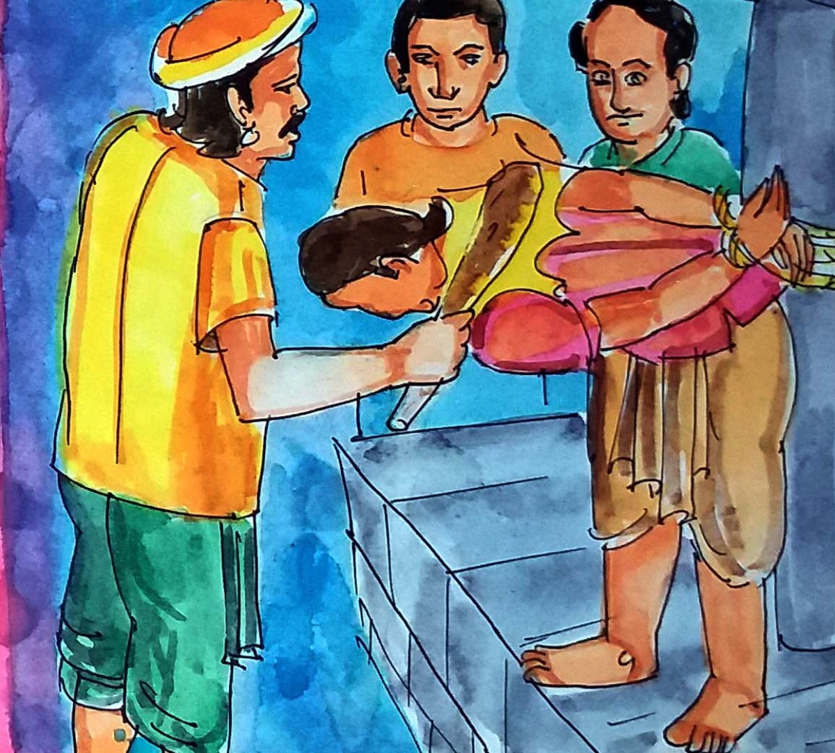 అయితే ఈసారి అంగళ్ళ వాళ్ళు మోసపోలేదు. “నువ్వు కుళ్ళిపోయిన టెంకాయలు అమ్ముతావట గదా?” అనగానే, "అవును. ఎన్ని కావాలి?” అన్నాడు అంగడాయన. పాపయ్యకు వెంటనే ఏమనాలో తెలీక నీళ్ళు నమిలాడు.