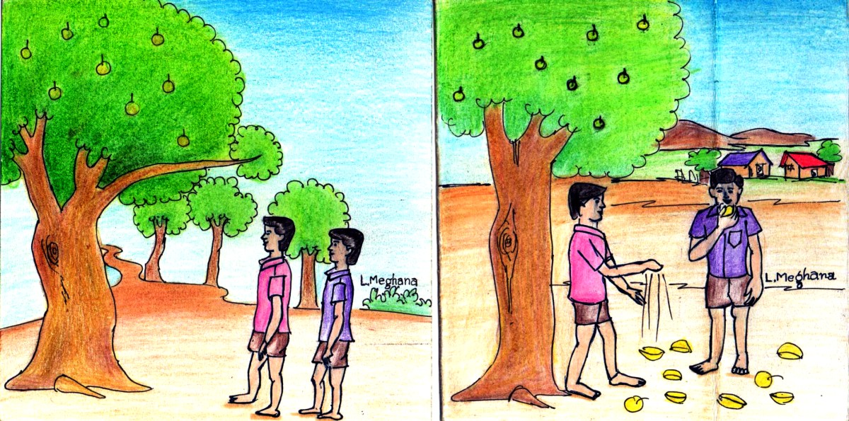"ఈ కాయలు కోసుకుందాం. ఆకలి వేస్తున్నది" అన్నాడు గణేష్.