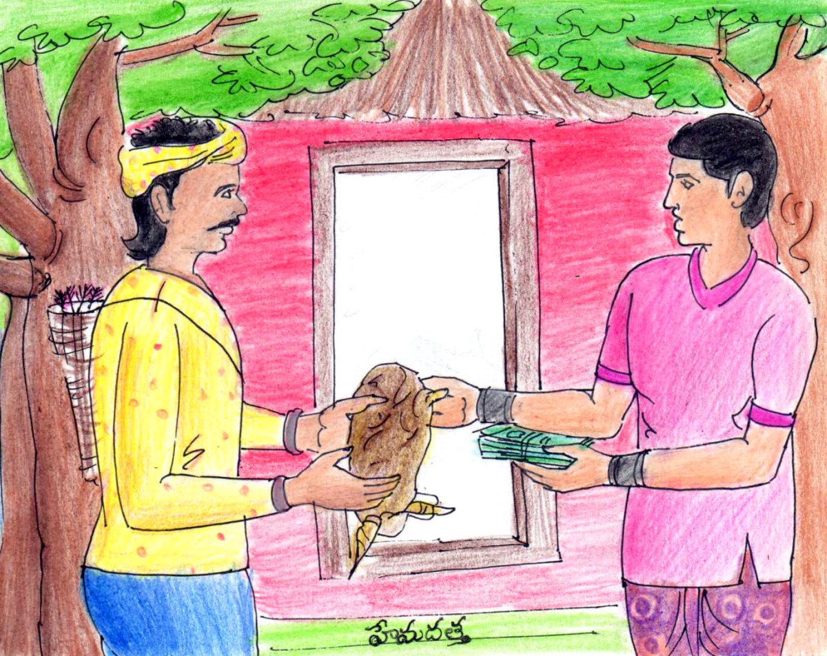 అట్లా నీ అవసరాలకు పోగా మిగిలిన సొమ్మును దాన ధర్మాలకు వినియోగించు. నీకు మంచి కీర్తి ప్రతిష్టలు లభిస్తాయి. ఇక జంతుహింసను మానెయ్యి" అంటూ ఒక పాత్రని అతని చేత పెట్టి అదృశ్యం అయిపోయింది.