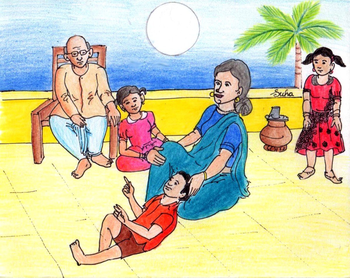 సునంద ఆశ్చర్య పోయింది. "పల్లెల్లో పిల్లలకి ఇంత చిన్న వయసు నుంచే తోటి మనిషి గురించి ఎంత శ్రధ్ధ!" అనుకుంది. బిట్టు అమ్మమ్మ ఒడిలో తల పెట్టుకుని పడుకున్నాడు. వాడు ఏదో చేతులు, వేళ్లు మడిచి లెక్కలు వేయటం చూసి తాతయ్య అడిగారు- ‘ఏమి లెక్కలు వేస్తున్నావురా, బిట్టూ?!’ అని.