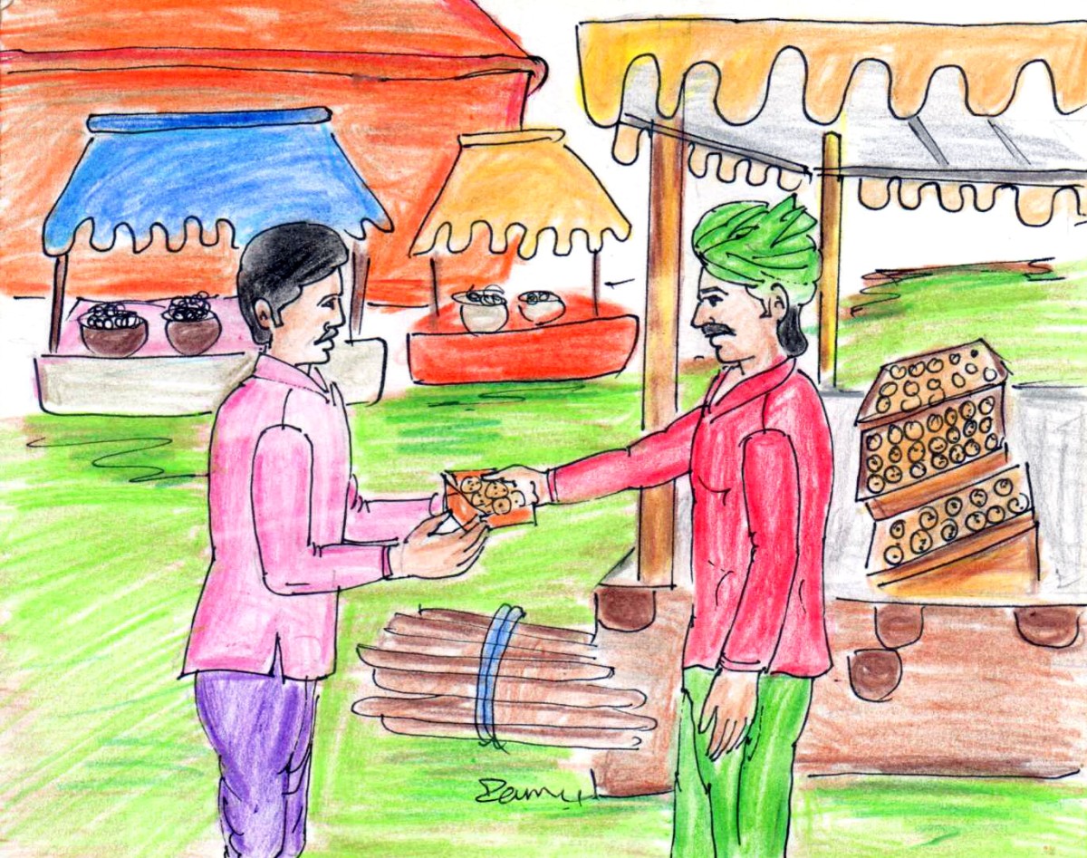 రామయ్య వాటిని సంతోషంగా అందుకొని, తింటూ "నేను అల్లావుద్దీన్ దీపం లాంటి దీపం కోసం వెతుకుతున్నాను. అవి ఎక్కడ దొరుకుతాయో తెలుసా, మీకు?" అని అడిగాడు దుకాణం అతన్ని.