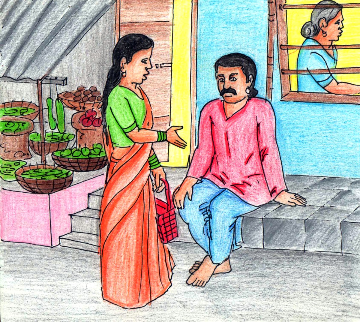 ఆ మూటల్ని ఆమె ఒక్కతే ఆటోలోంచి దింపుతుంటే, భర్త ప్రతాప్ ఊరికే చూస్తూ కూర్చున్నాడు తప్ప, కనీసం దగ్గరకు వెళ్ళి చేతి సాయం కూడా చెయ్యలేదు.