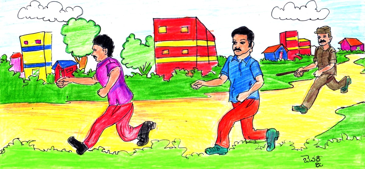 వీళ్లు పారిపోవడం చూసిన పోలీసు "ఆగండి...ఆగండి" అని అరుస్తూ వెంట పడ్డాడు. అట్లా చాలాదూరం పరుగు పెట్టాక గానీ, పర్మిట్ ఉన్న వ్యక్తి పోలీసు చేతికి చిక్కలేదు.