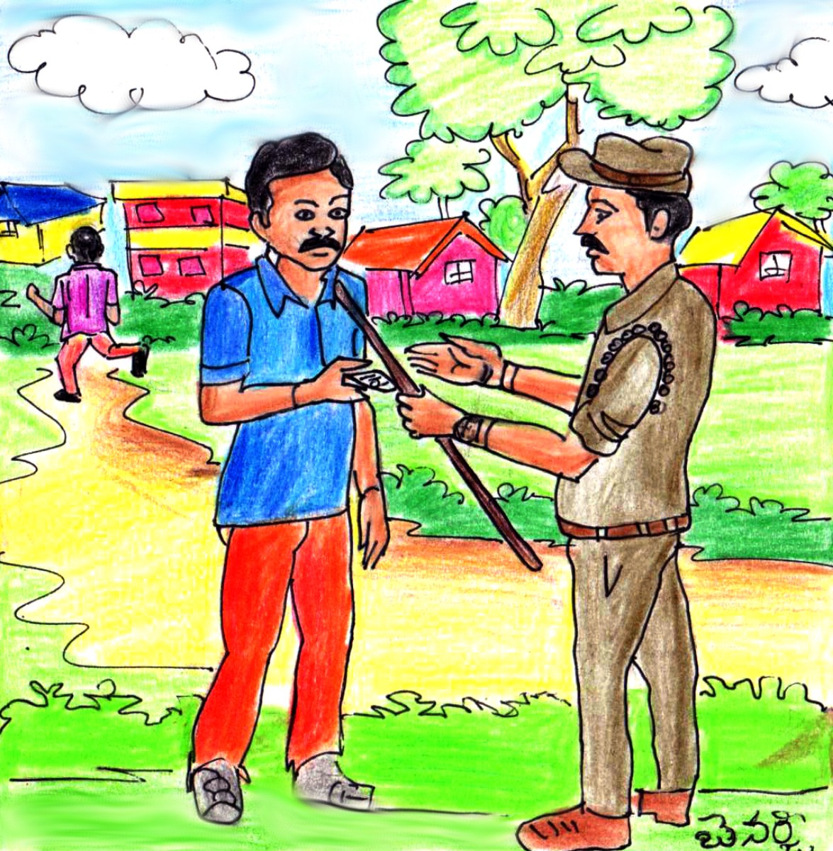 ఇంక ఏమీ అనలేని పోలీసు పళ్ళు నూరుకుంటూ వెనుతిరిగాడు.
